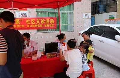 2016年8月10日由海口市龙华区民政局、坡巷社区特联合海口肤康医院举办的“助力双创.关爱全民皮肤健康”走进坡巷社区。尽管当天气温高达38℃,义诊专家团依旧顶着烈日悉心为居民解答各种皮肤问题,真正做到了急病患所急,忧病患所忧,并藉此达成了我院防治皮肤病和健美肌肤的初衷。
