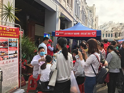 3月5日是全国“学雷锋纪念日”,也是海口首个“全民公益日”。5日上午,2017年海口市“益起向善·全民公益”活动启动仪式在骑楼老街举行。我院组织皮肤病专家亲赴现场为市民进行免费义诊和皮肤病咨询服务。